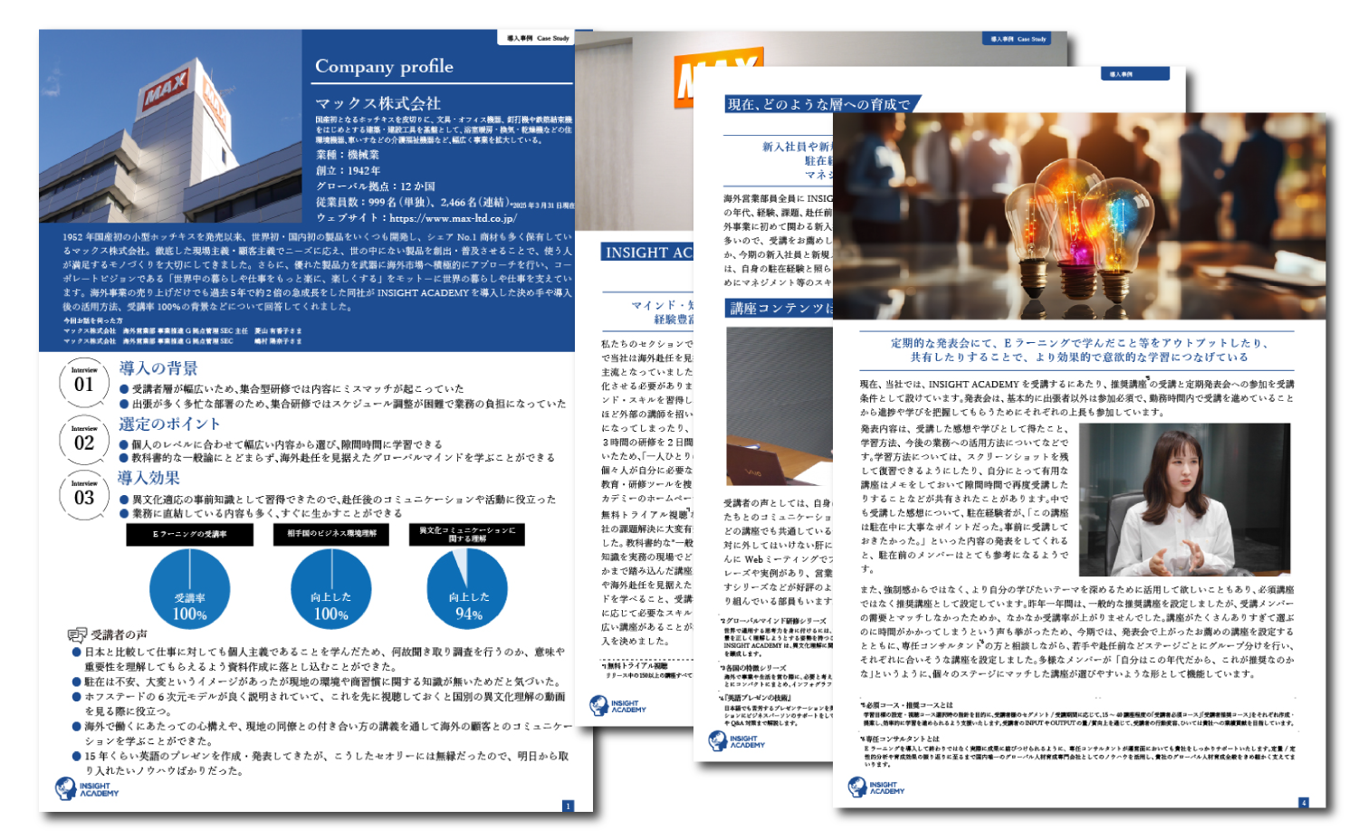 マックス株式会社様のグローバル人材育成課題から「INSIGHT ACADEMY Eラーニング」導入の背景、選定ポイント、活用方法をまとめた導入事例を公開!